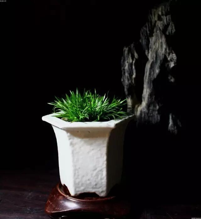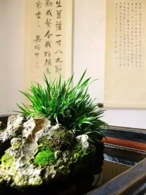 “弹古琴,品普洱,着唐装,听昆曲,燃沉香,习密宗,植菖蒲”,是谓江南七俗。《群芳谱》记载养菖蒲:”春迟出,夏不惜,秋水深,冬藏密。”文房置菖蒲一二,配以雅石,石有情,草有性,为文人谱一首淡雅之曲,可谓随意拾就巧天成。