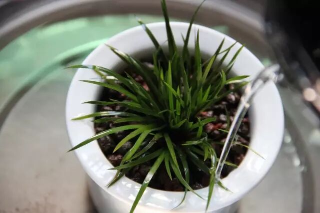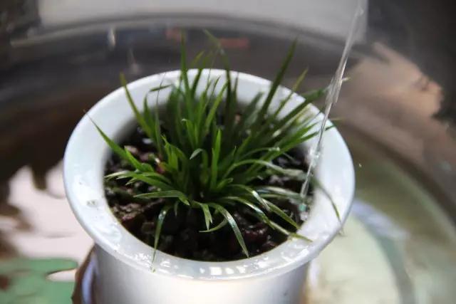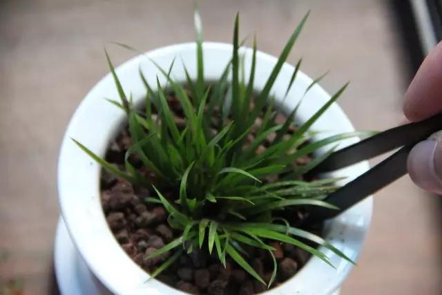 在加入植料的过程中,可以用小镊子调整蒲根的位置,使蒲根分散,在植料快满盆时,用小镊子适当搅动、压实,使所有蒲根都能接触植料,悬空的蒲根时间长了会烂掉。