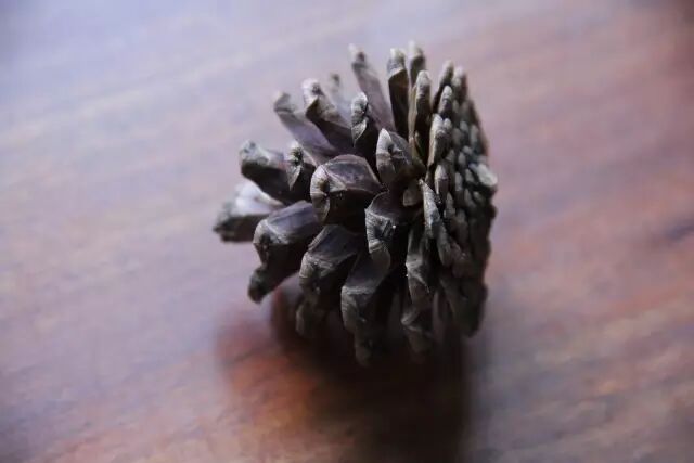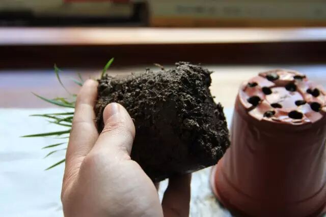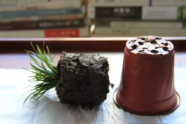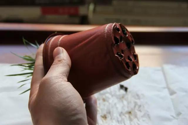 松球华丽登场。从松球上剪掉一片,用来遮挡蒲盆底孔,防止浇水时植料从底孔漏出。