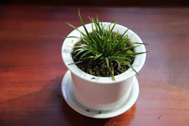 金钱菖蒲苗小,最好不要选用大盆,浪费植料还不好看。这次用的是圆筒状仿古白色瓷盆,下配盆托,盆的口径和高大概都在10cm左右,这个比例整体看起来较为协调。
